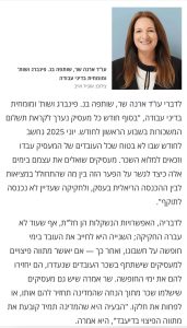 כיצד תיראה משכורת חודש יוני? עובדים ומעסיקים בחוסר ודאות בשאלת תשלום השכר על רקע מלחמת עם כלביא. עו״ד ארנה שר, שותפה במשרד, התראיינה לדה מרקר בעניין.